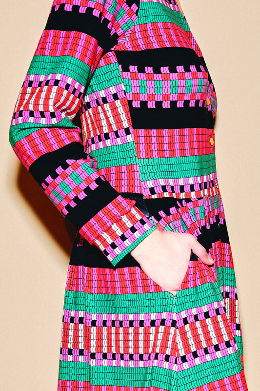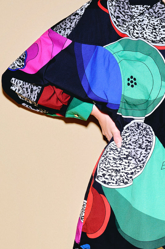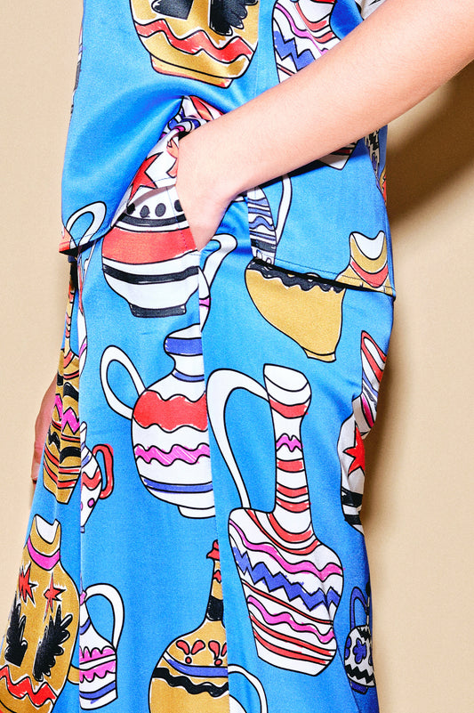 Clay jars, enamel pots, and hand-painted jugs become the inspiration behind our new prints, blending earthy tones with bold bursts of blue, red, and purple.