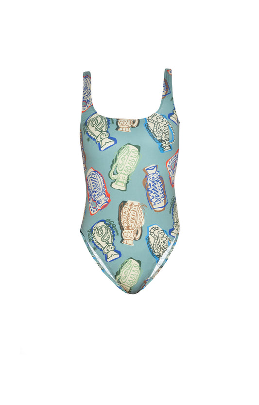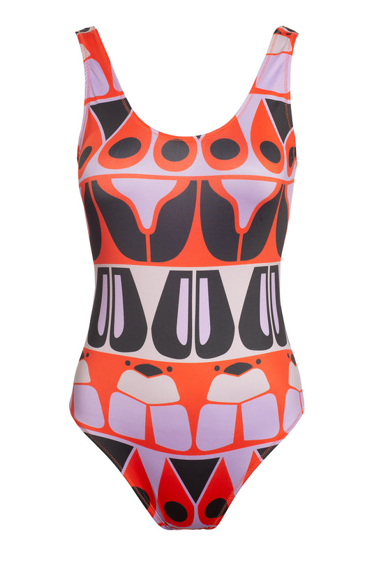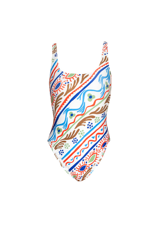 DEMIZSON open-back swimsuit 'Folkdoodle'