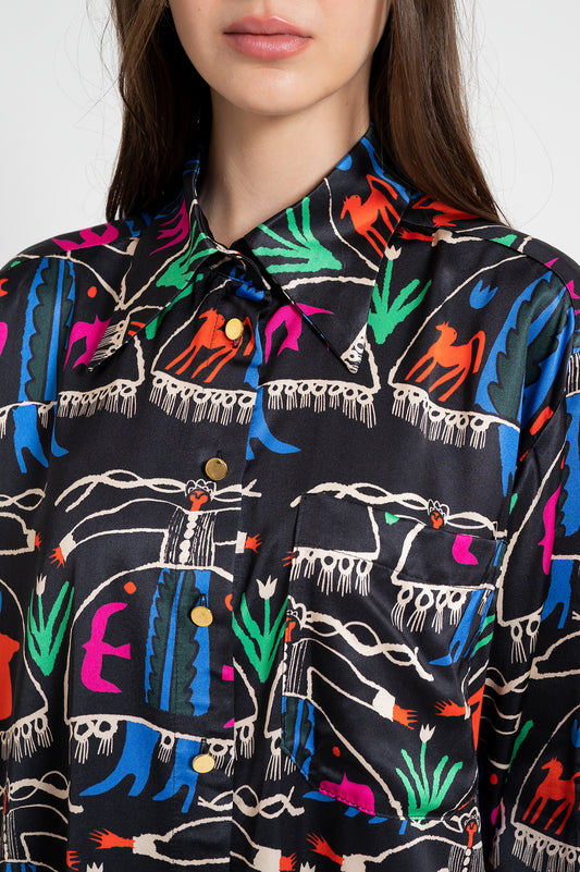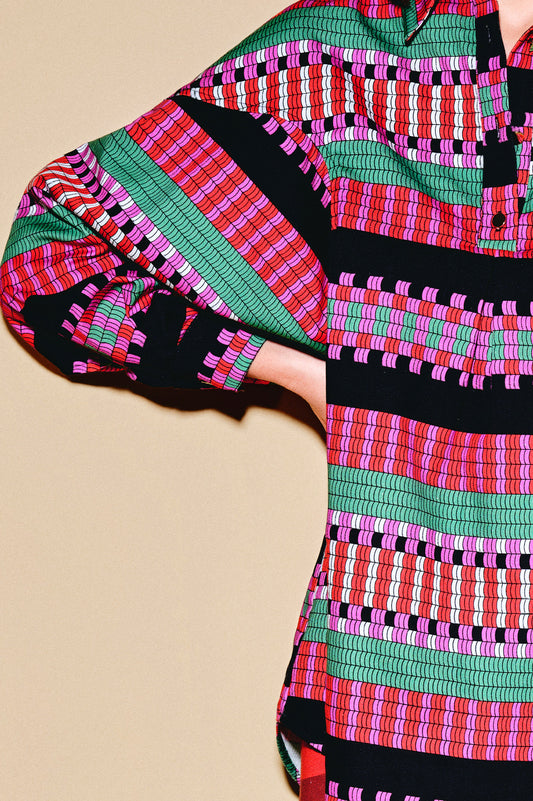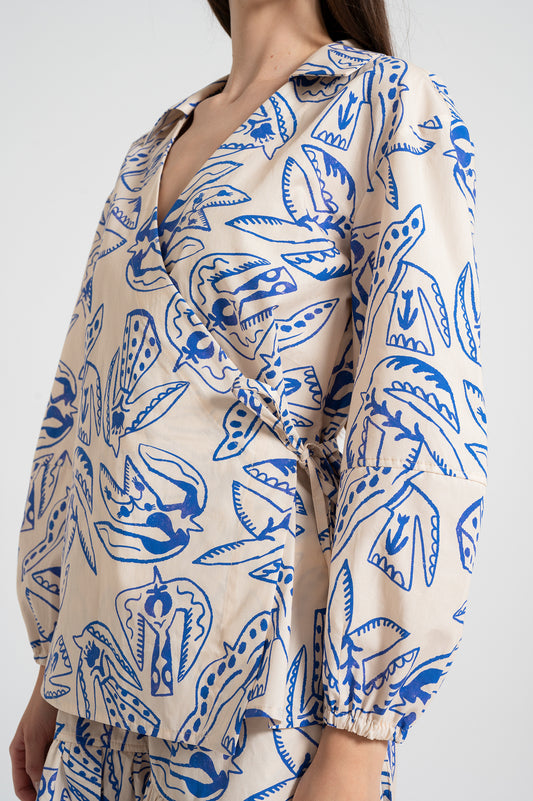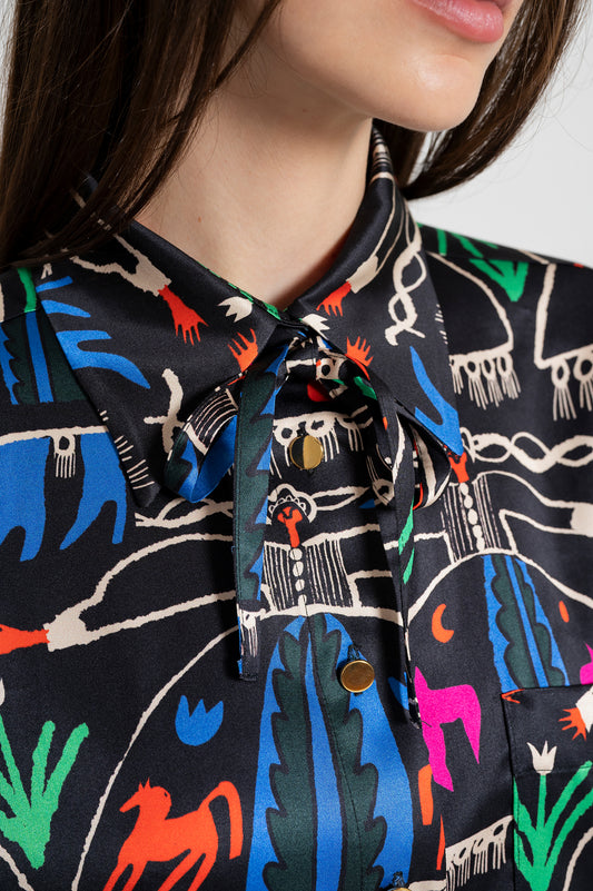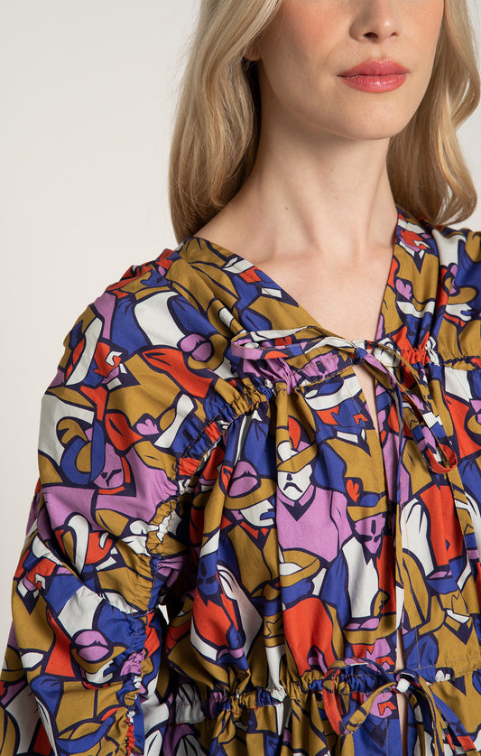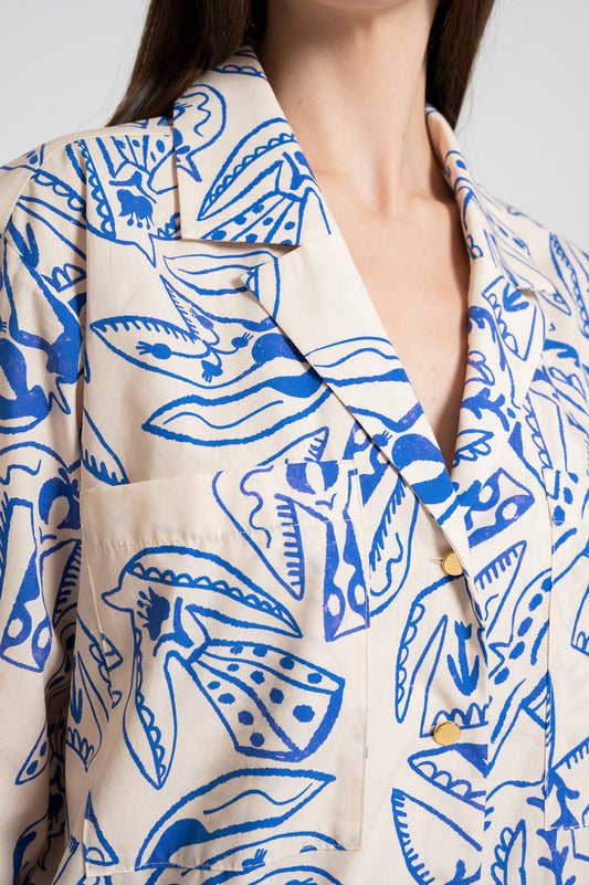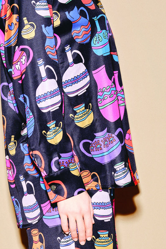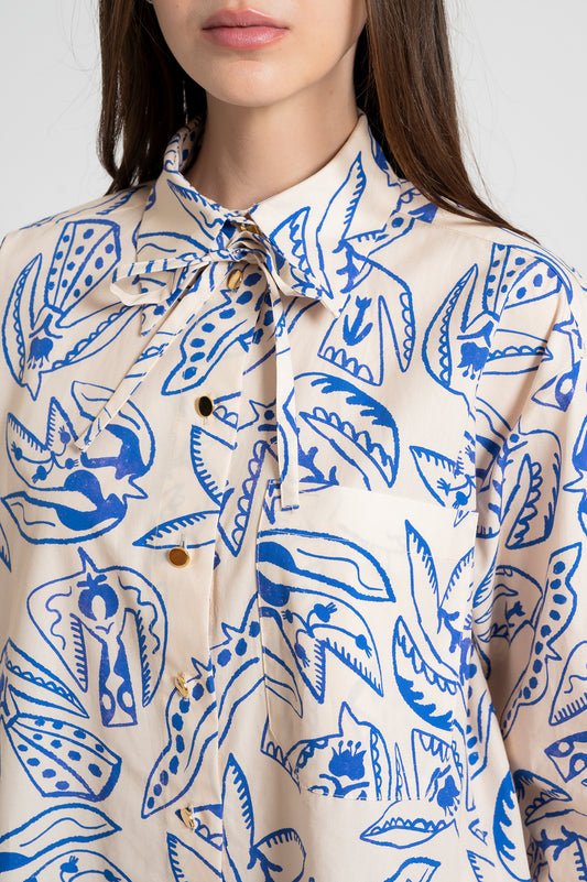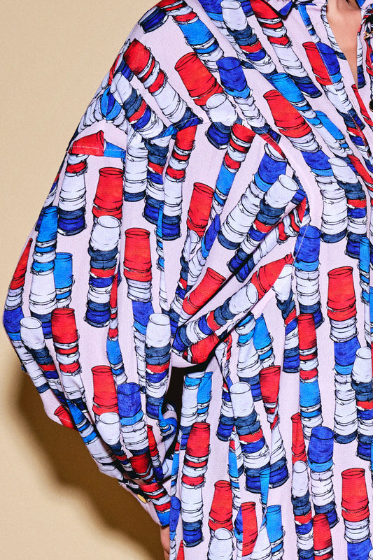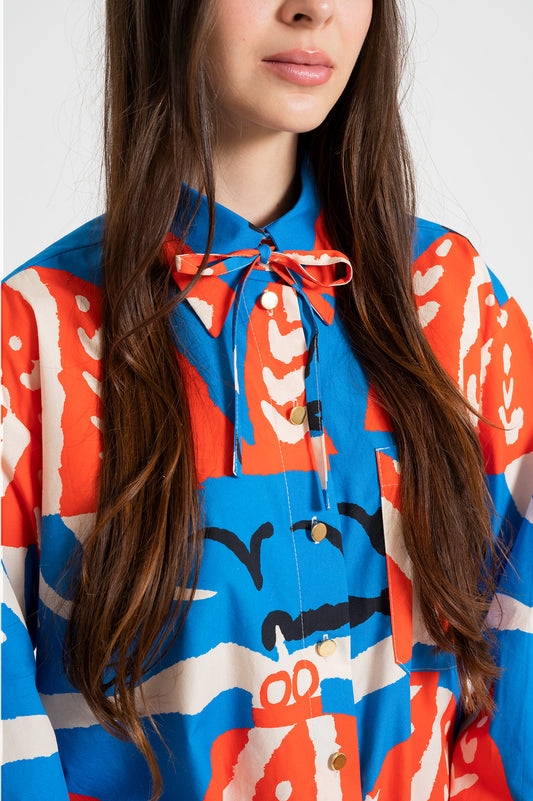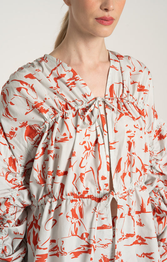 KOLOMPER gathered sleeve bomber shirt 'Doodle Vases'