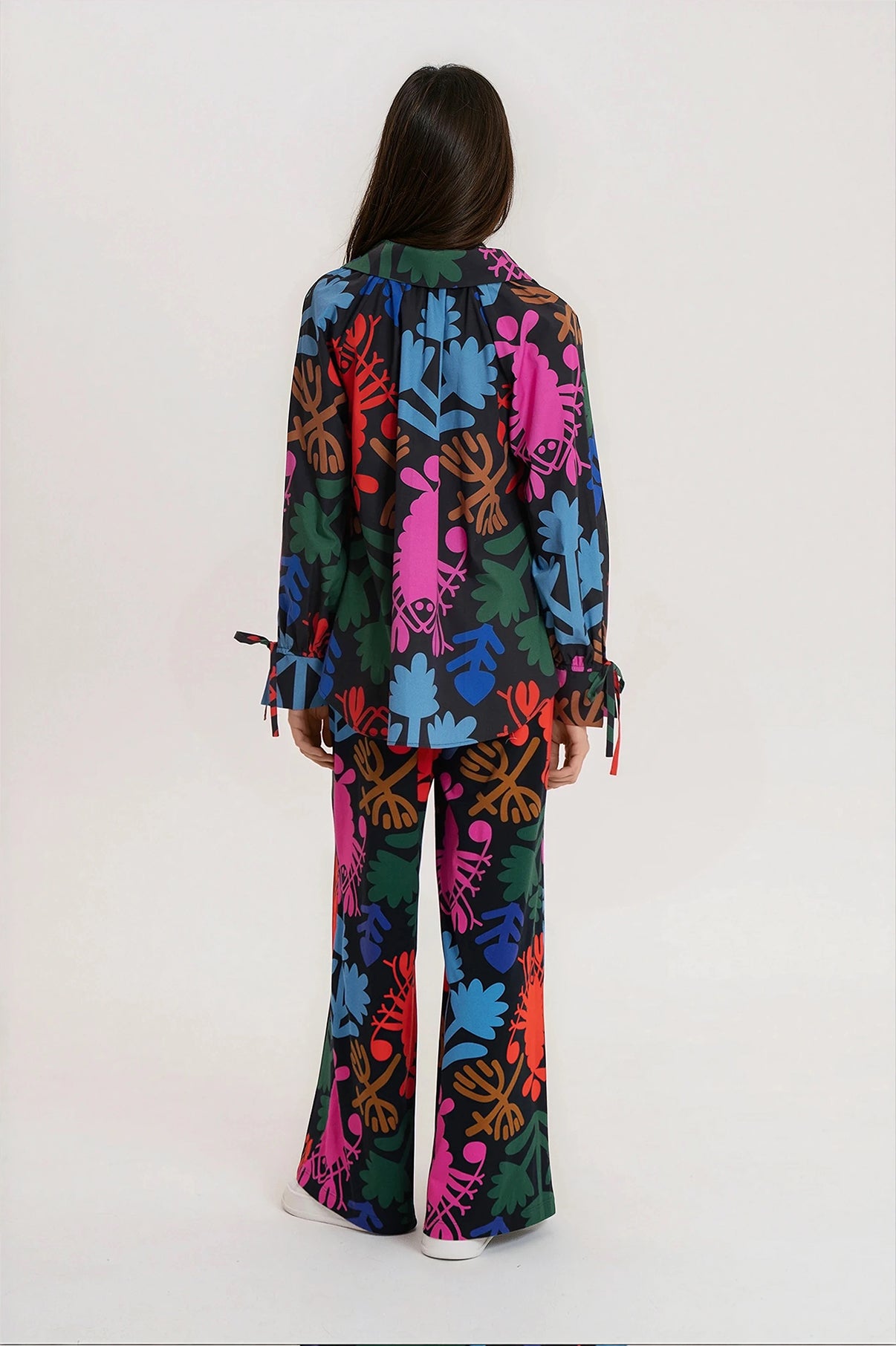 Crafted with string tie detail sleeves and neckline, this blouse features a rustic look with an oversized silhouette. Elevate your wardrobe with this must-have piece, made from a crispy cotton poplin.