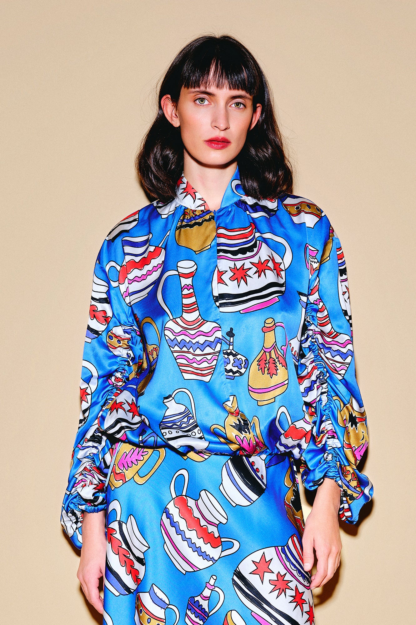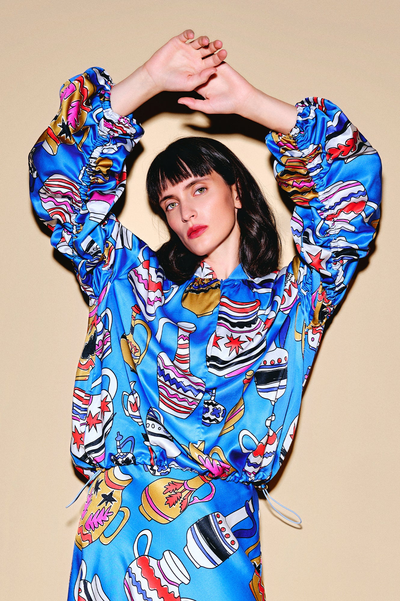 KOLOMPER gathered sleeve bomber shirt 'Doodle Vases'