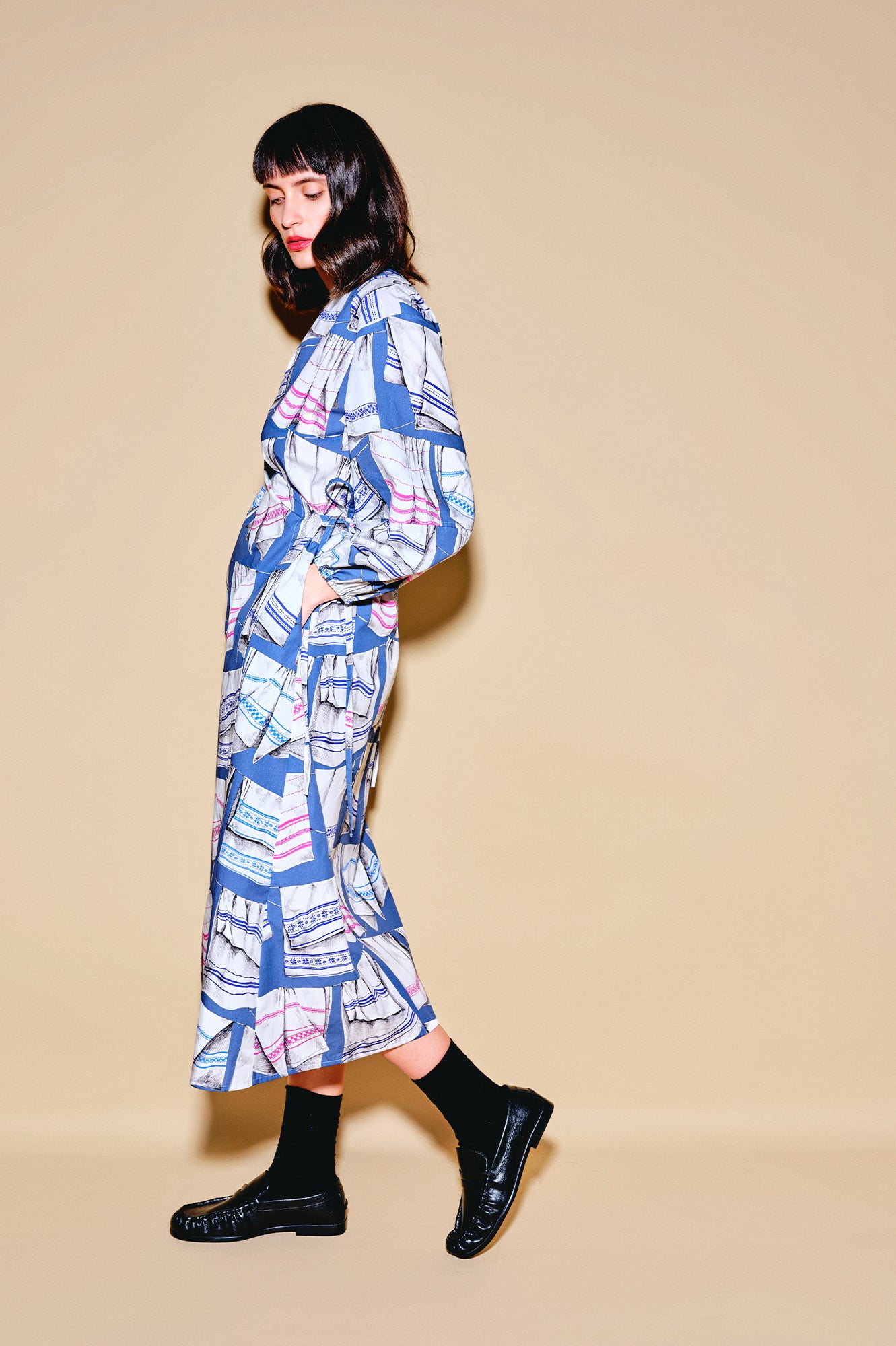 PASZULY wrap shirt dress 'Kitchen Towel Blue'