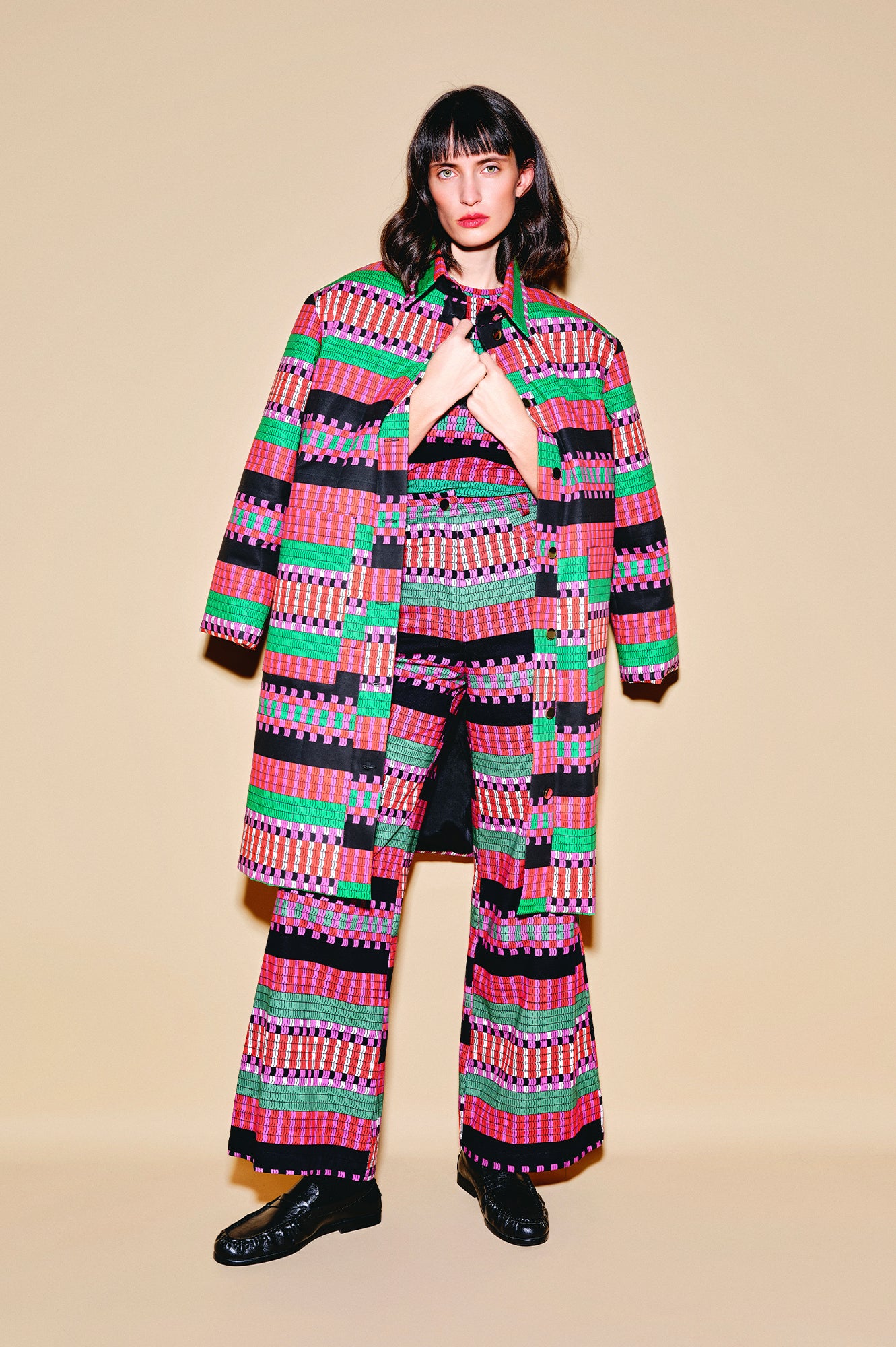 Each garment is one of a kind. Because our printed fabrics are cut in the most sustainable way without pattern placement, the print may fall differently on every piece. This makes each item truly unique — a reflection of our careful, handcrafted process.