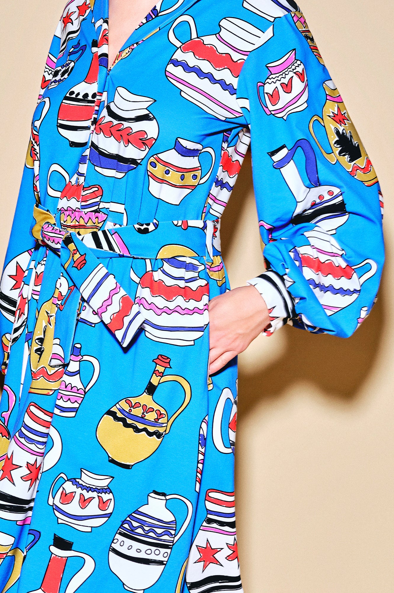 Meet the TANYA wrap dress — your new partner in fun. Made from soft, comfortable cotton jersey, it features front buttons, side pockets, and a tie belt for an easy fit. With its midi length and blazer-style collar, it’s effortlessly playful yet perfectly polished.